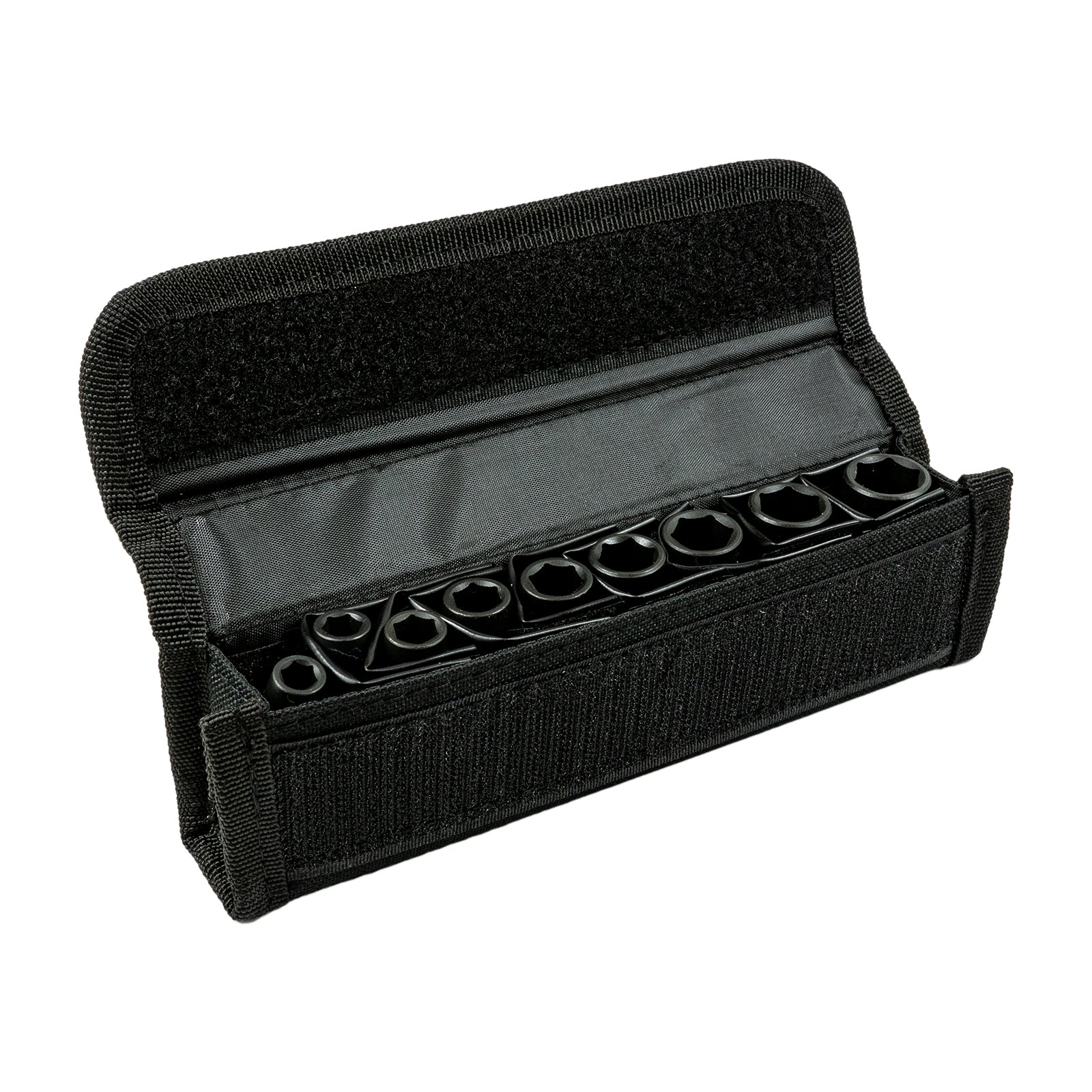Die Einsätze haben eine Nut und ein Durchgangsloch für extra festen Halt und können mit Stift und Ring sicher an Ihrem Schlagschrauber befestigt werden. Das Set umfasst neun verschiedene Schlüsselweiten: 6 mm, 7 mm, 8 mm, 9 mm, 10 mm, 11 mm, 12 mm, 13 mm und 14 mm, die für eine Vielzahl von Anwendungen optimal geeignet sind.